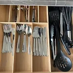 Within the in-room media amenities, there is a flat-screen TV with satellite channels. Beds fitted with plump-down pillows are at guests' disposal. Also, the apartment comes with a separate toilet and a shower in the bathroom. Furthermore, a hair dryer and bath sheets is available.